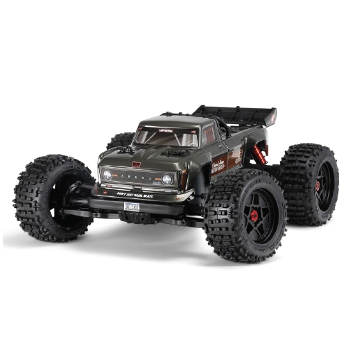 شاحنة ARRMA 1/10 OUTCAST 4S BLX V2 ذات اللون الرمادي المعدني مصممة لأداء حركات بهلوانية شديدة، وقفزات، وقيادة جنونية على جميع أنواع التضاريس. تتميز بقاعدة عجلات قصيرة (12.32 بوصة) لرشاقة فائقة ، وترس تفاضلي مركزي معدني لأقصى قوة جر ، ونظام طاقة Spektrum 4S محدث بدون فرشاة لمزيد من القوة.