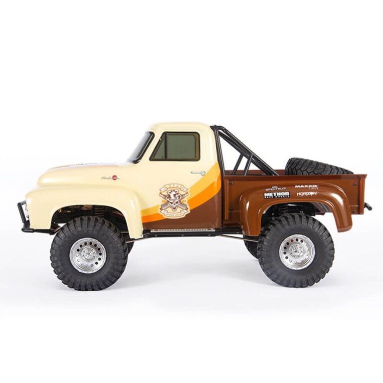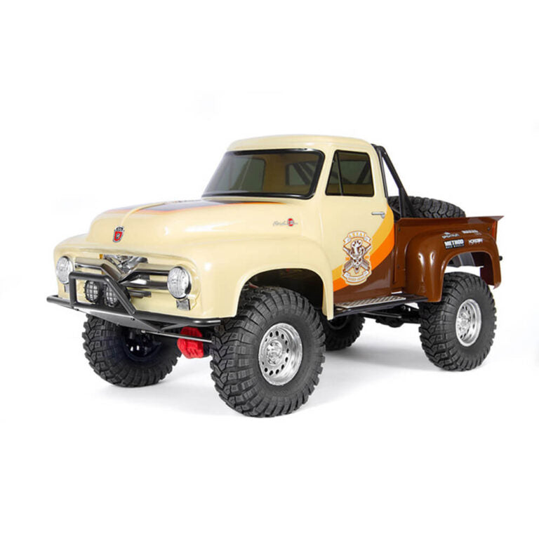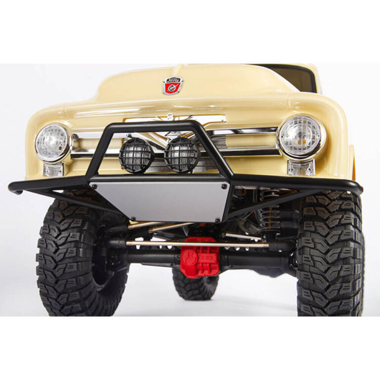 تجمع سيارة Axial SCX10™ II طراز 1955 Ford F-100 RTR بين التصميم الكلاسيكي على نطاق واسع والأداء المُثبت لسيارة SCX10 II. تتميز هذه الزاحفة الجاهزة للتشغيل بهيكل Ford F-100 طراز 1955 مرخص رسميًا مع تفاصيل أصلية مثل الشبك الأمامي المطلي بالكروم والمبرد ومصابيح القيادة LED العاملة. تتيح لك نقاط التثبيت الاختيارية إضافة المصابيح الأمامية وعلامات إشارات الانعطاف لتعزيز واقعية النطاق. تتحرك على عجلات METHOD Hole المرخصة رسميًا مع إطارات Maxxis Trepador R30 المركبة لقبضة فائقة، بما في ذلك إطار احتياطي عملي. تم بناؤها على هيكل SCX10 II المتين، وتتميز بمحاور AR44™ أحادية القطعة وإطار فولاذي واقعي بقناة C ونظام تعليق قابل للتعديل وبوق سيرفو معدني لتوجيه حاد ودقيق. مع إلكترونيات مقاومة للماء وممتصات صدمات مملوءة بالزيت ووحدة تحكم إلكترونية Dynamite AW-5L، هذه الشاحنة جاهزة لمغامرات الزحف على نطاق واسع - ما عليك سوى إضافة البطارية والشاحن الخاصين بك.