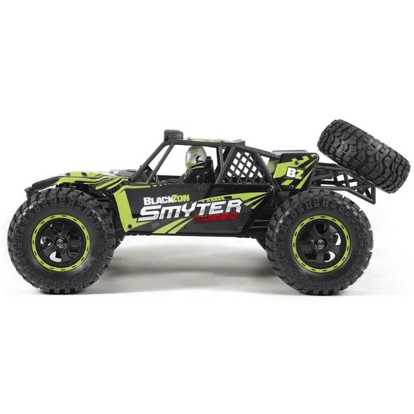 HPI Blackzone Smyter DB Turbo هي عربة صحراوية بدون فرشاة، ذات دفع رباعي، بمقياس 1/12، مصممة للقيادة عالية الأداء على الطرق الوعرة. تتميز هذه العربة بنظام دفع قوي يعمل بعمود، وممتصات صدمات قابلة للتعديل مملوءة بالزيت، وتروس تفاضلية فولاذية رباعية السرعات، وهي مصممة لضمان المتانة والتحكم على الطرق الوعرة.