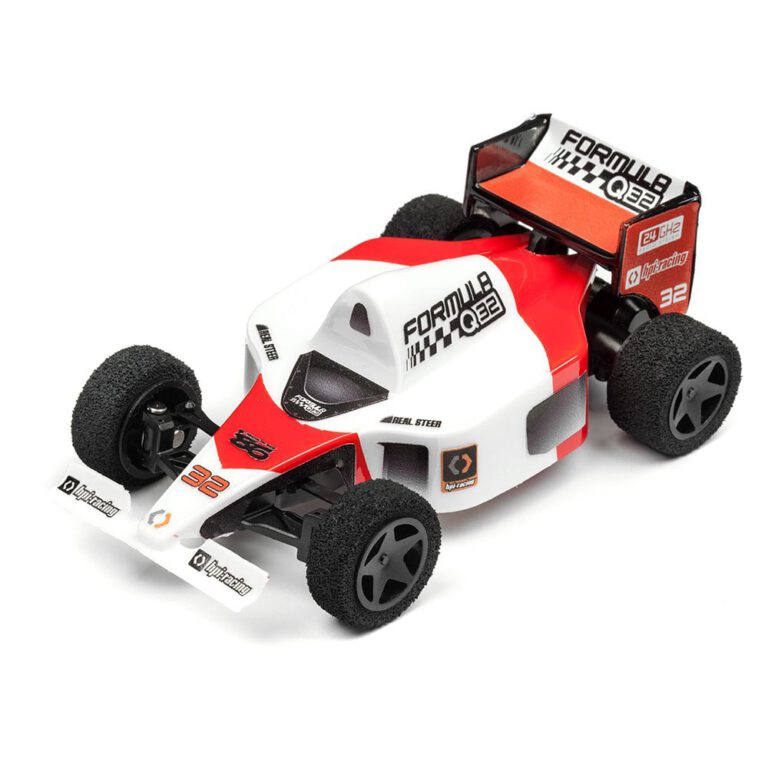 When you want wheel-to-wheel formula racing action at home, you have to check out the tiny and fun Formula Q32! This palm-sized racer features the look and the styling of classic open-wheel racers combined with the ease of a pre-built and ready-to-drive rear-wheel drive racing car.
