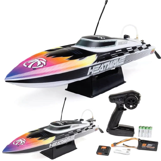 The hull is crafted from high-impact ABS with officially licensed livery by Shreddy and Heat Wave Visual, offering both durability and stunning looks. The included Spektrum Smart 3S LiPo battery provides up to 7 minutes of run time, while the S120 Smart USB-C charger makes charging simple and safe.