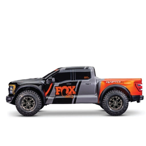 Experience real Ford® F-150® Raptor R™ power in 1/10 scale with the Traxxas Raptor R Pro Scale® 4X4 VXL FOX Edition. This brushless beast captures every aggressive line of the real Raptor R with clipless Pro Scale® realism and delivers extreme 60+ mph speeds with Velineon® brushless power. Built on the extended Slash 4X4 platform, it’s packed with heavy-duty upgrades and Traxxas Stability Management® (TSM) for incredible durability and control.